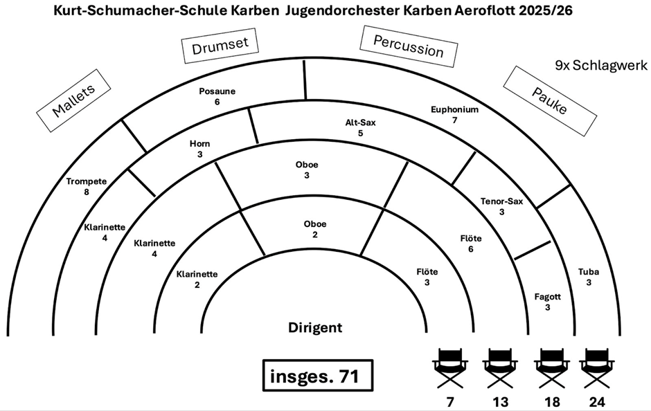 Das Jugendorchester „Aeroflott“ ist das Jüngste unserer Orchester und wird für die Jahrgangsstufen 7 und 8 angeboten. In der Regel wechseln Bläserklassenabsolventen zunächst zu „Aeroflott“, um ihre musikalischen Fähigkeiten weiter auszubauen.